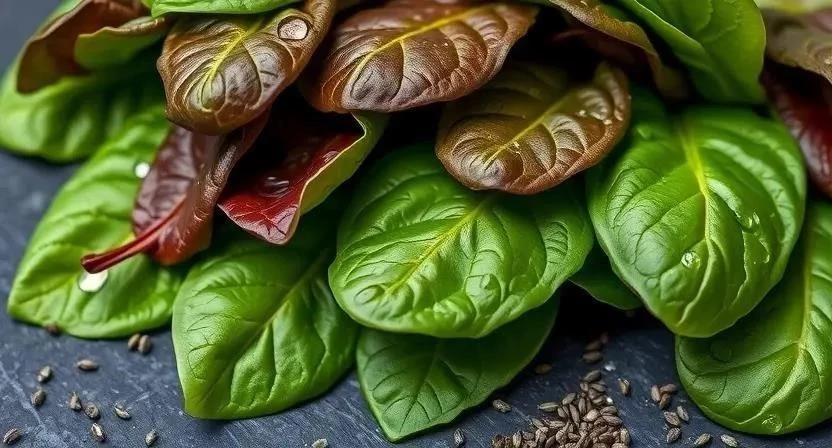 - Шпинат: Источник железа, витамина A и витамина C.