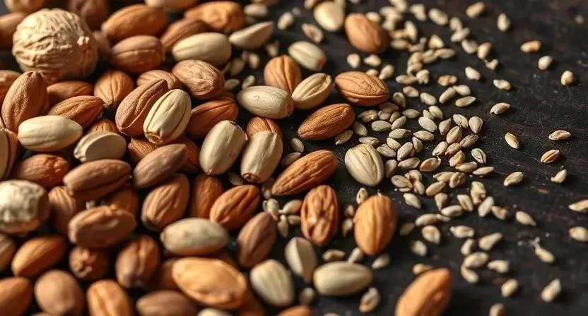 - Орехи и семена: грецкие орехи, миндаль, семена льна, семена чиа